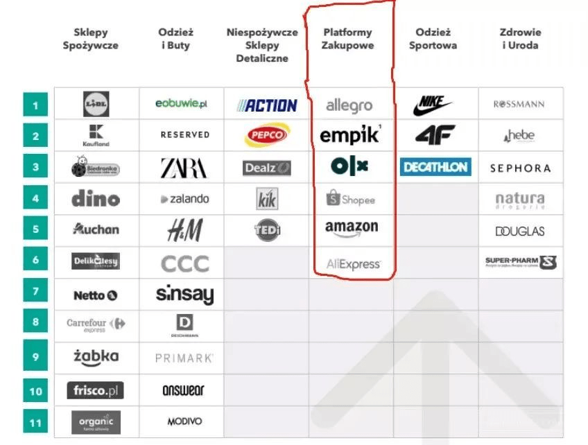 (OC&C Strategy Consultants)针对今年波兰人的购物喜好做了调查,最终结果显示Allegro不仅是最受好评的零售商,同时在“最佳购物平台”排行榜上排名第一,亚马逊则排在第五位。